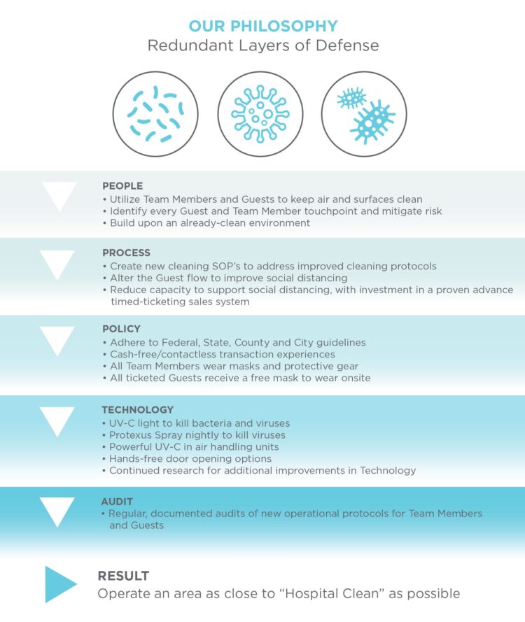 We’ve developed our Elevating Clean procedures using scientifically-backed equipment and protocols to deliver as safe an experience as possible for Guests and Team Members. The work doesn’t stop there, though. Our team continually audits the experience to ensure everything is working as it should, while staying informed about new technologies and policies for the most up-to-date procedures possible.